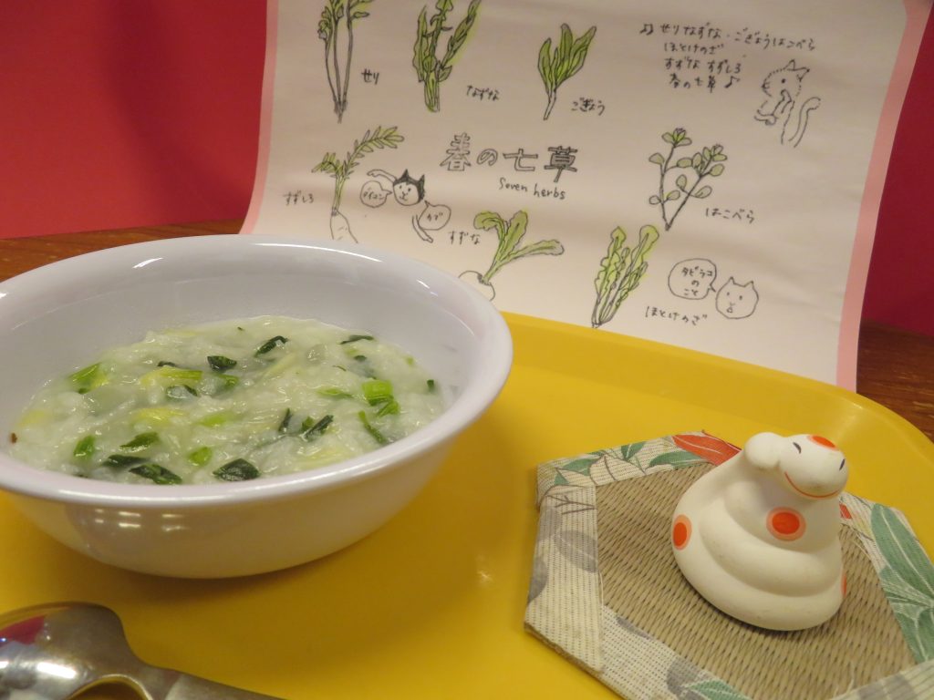 給食さんが七草を入れた、美味しいおかゆを作ってくれました。