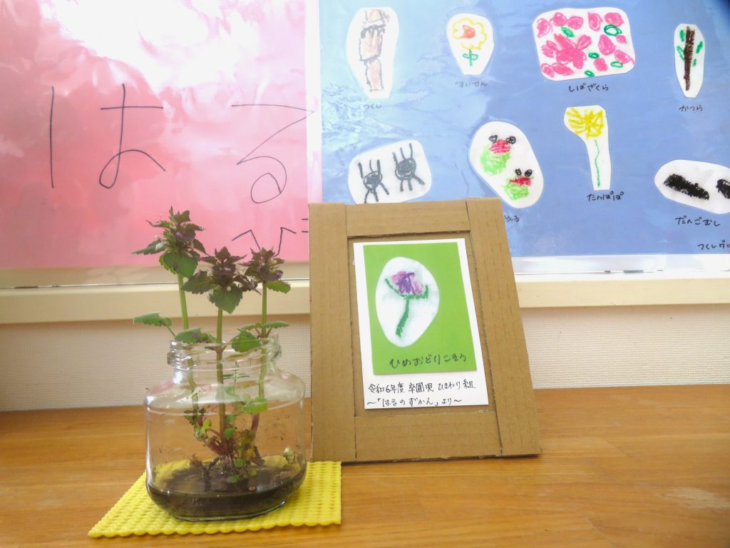 そして、子ども達が園庭の春「ヒメオドリコソウ」を見つけてくれました。