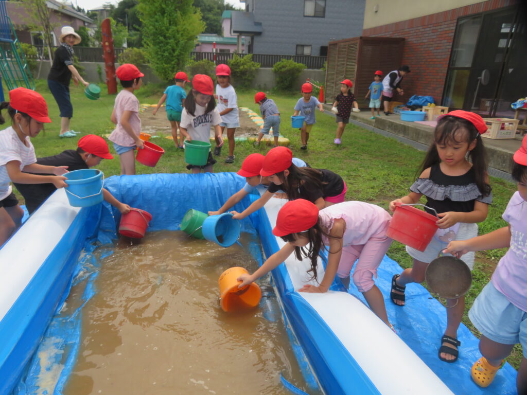 プールの中は泥水で下が見えません。